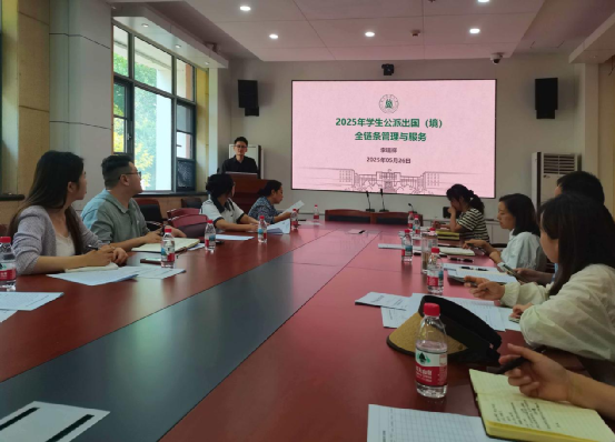 华中农业大学国际合作与交流部张建华、李瑞祥分别就教职工因公出访和学生公派留学的相关手续、流程规范,以及外事纪律、安全保密、留学安全等注意事项作了具体说明与提醒。