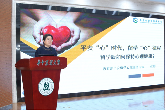 张静围绕留学心理适应主题,通过现场互动,引导师生认识心理调适的重要性,并分享了认知调整、情绪管理及建立社会支持系统的具体方法,为平安留学注入“心”能量。