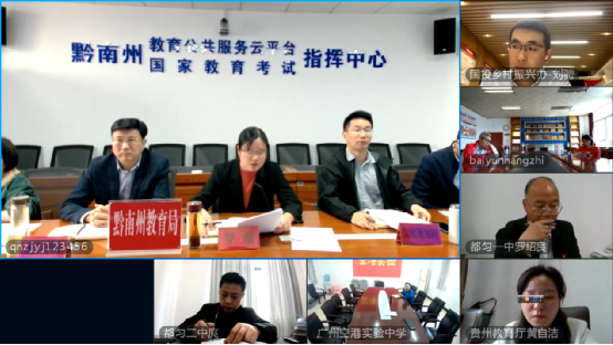 广州市教育局二级调研员周云华和黔南州教育局党委委员、政治部主任罗璇介绍了自2013年广州市与黔南州结为对口帮扶协作关系以来,两地开展对口协作的工作情况,并重点介绍了罗甸县、三都县下一步开展教育人才“组团式”帮扶工作的具体实施方案。