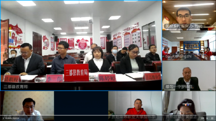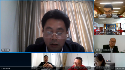 为深入贯彻落实中央组织部、教育部等8部委联合印发的《国家乡村振兴重点帮扶县教育人才“组团式”帮扶工作方案》(简称“《工作方案》”),推动贵州省罗甸县和三都县教育人才“组团式”帮扶工作顺利开展,5月17日,教育部留学服务中心协调组织中央统战部、国家开发投资集团有限公司等中央定点帮扶单位,以及广东省教育厅、贵州省教育厅等广东省和贵州省内的8家东西部协作省(市、县)教育厅(局)和16所援受学校等26家单位的近60位代表,召开罗甸县三都县教育人才“组团式”帮扶工作视频推进会。会议围绕罗甸县边阳中学、罗甸县中等职业学校、三都县高级中学和三都县民族中等职业学校等四所重点帮扶学校教育人才“组团式”帮扶工作开展情况进行了深入交流,并研究部署下一步工作方案。中心副主任李晓哲出席会议并讲话。