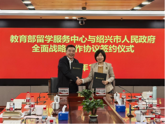 2025年12月4日下午,教育部留学服务中心(以下简称“中心”)与绍兴市人民政府在北京正式签署全面战略合作协议。中心主任王大泉、绍兴市人民政府副市长张雪分别代表双方签约,标志着国家级留学服务资源与地方城市发展需求的深度对接迈入新阶段。
