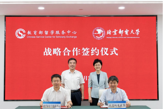 2025年7月23日,教育部留学服务中心党委(简称“中心”)与北京邮电大学党委(简称“北邮”)联合开展“人工智能赋能高质量留学服务体系建设”联学共建主题党日活动,并举行战略合作签约仪式。中心党委书记、主任王大泉同志、北京邮电大学党委书记续梅同志出席活动,中心党委委员、副主任夏建辉同志、中心党委委员、副主任李晓哲同志以及北邮党委常委、副校长苏森同志、党委副书记马启华同志参加,中心党政办公室、国际合作处、信息网络处、来华事务处、回国处等有关人员参加。